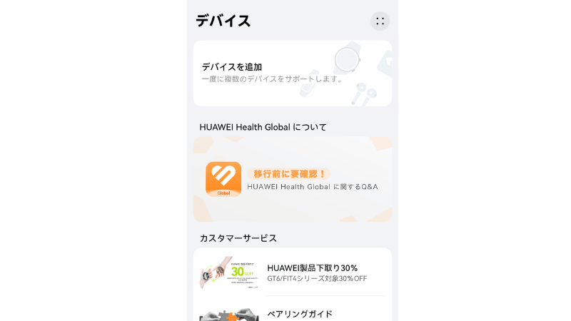 使うのは「HUAWEI Health」アプリだけで、iPhoneでもAndroidでも同じ流れで設定できます。