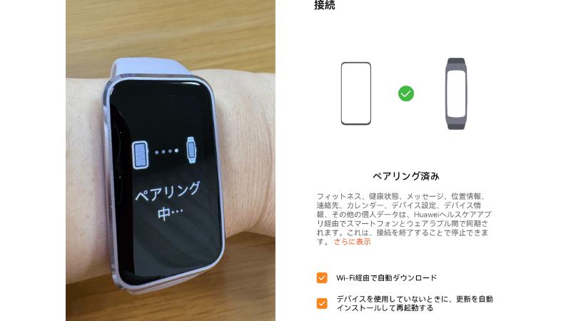HUAWEI Band 10 Aluminum Editionのペアリングはとても分かりやすく、スマートウォッチが初めての方でも迷わず始められます。