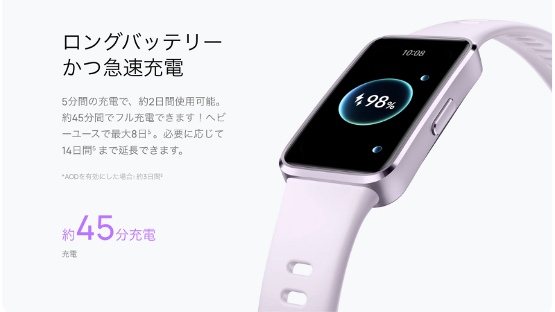 HUAWEI Band 10 Aluminum Editionはバッテリーが長く持つため、初めて使う方でも管理がとても楽です。