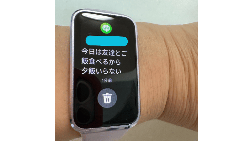 HUAWEI Band 10 Aluminum EditionはiOSにも対応しているため、LINEの通知内容までしっかり表示されるのが安心でした。